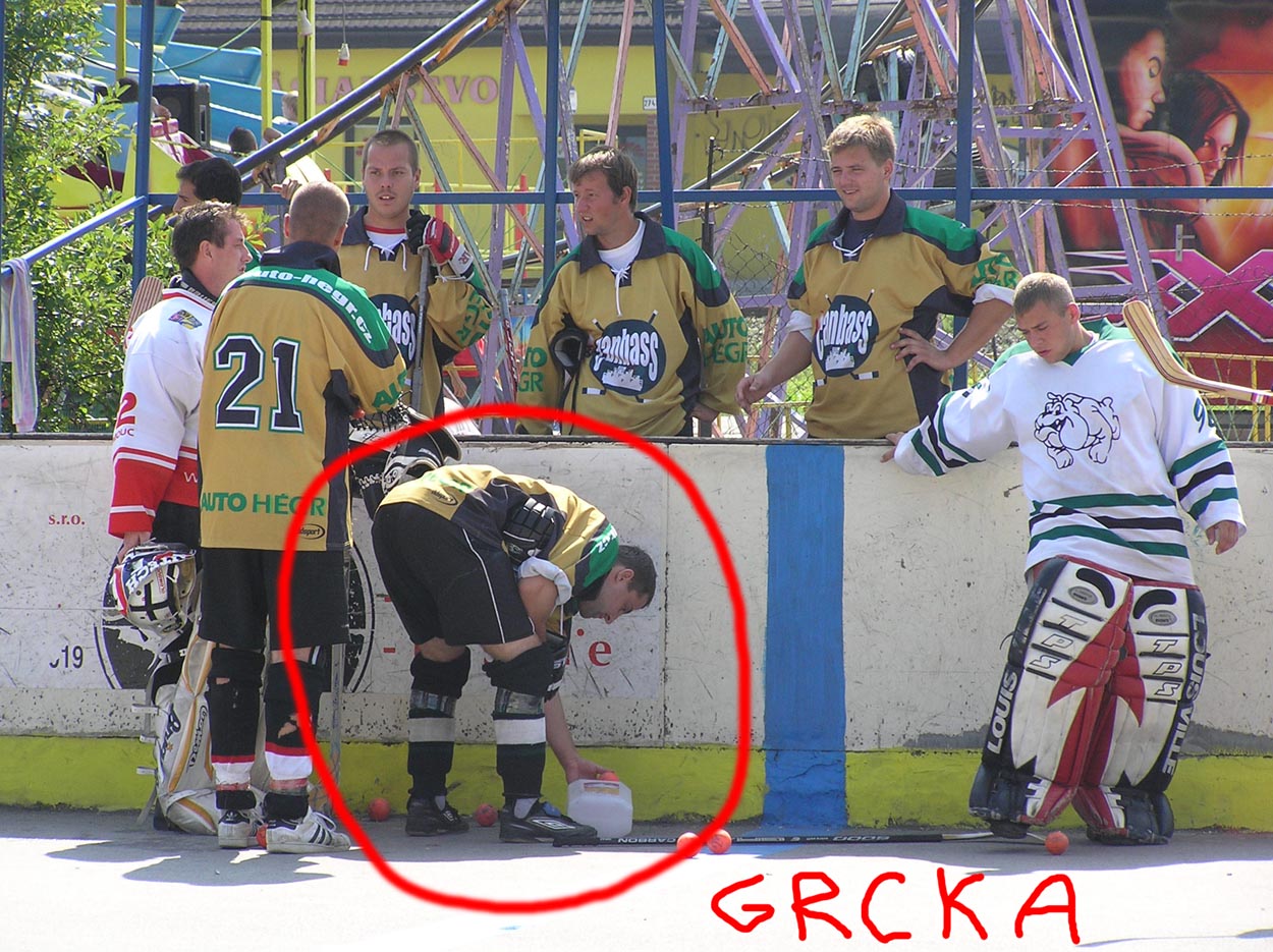 KLEPY (THC Džem-Májka) : jednou takhle při zápase mu prdlo v kuli, během probíhající první třetiny sundal náš dres s kapitánským C a přeběhl sp(r)asit rozpadající se huličský mančaft